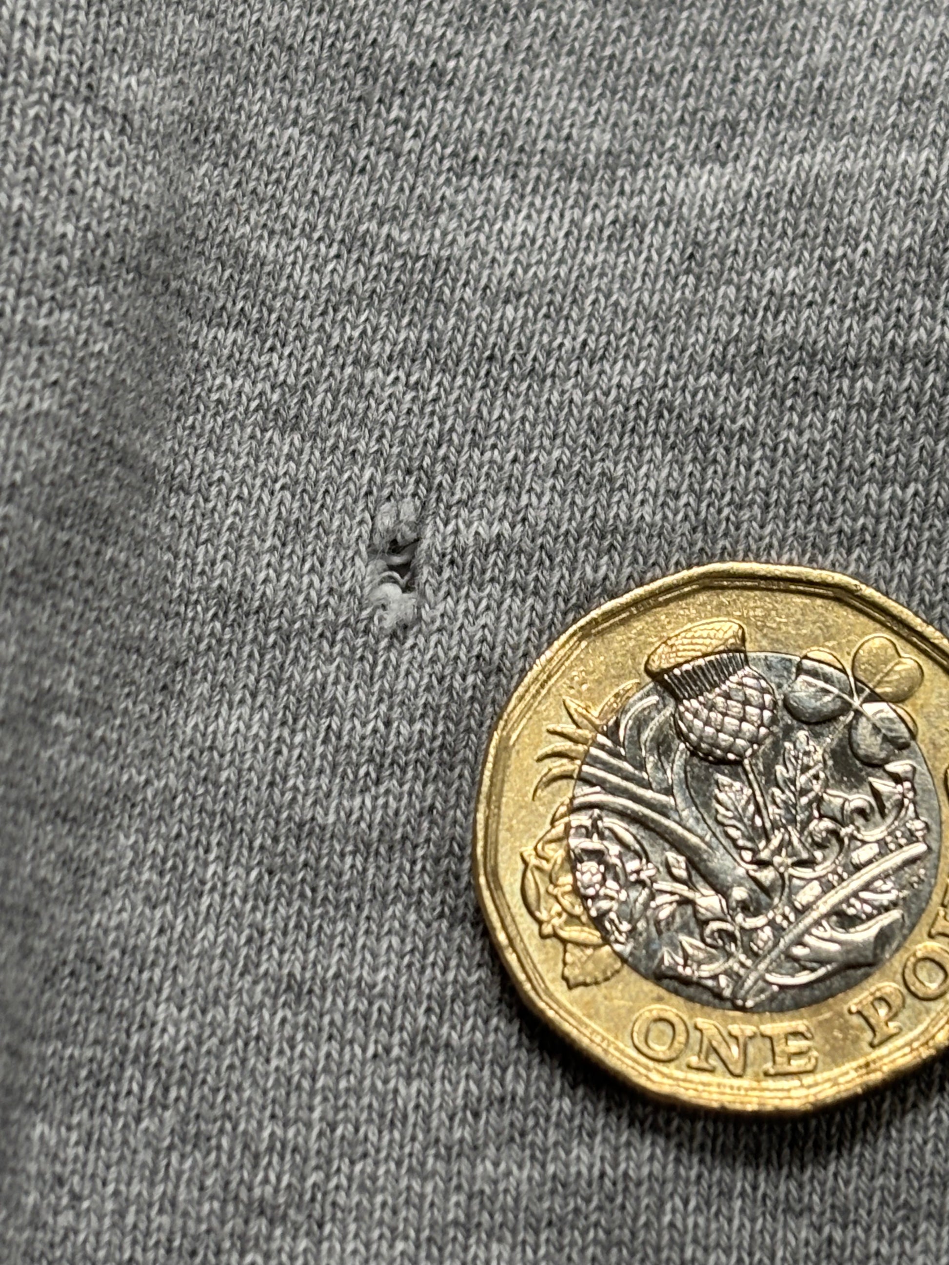 8.5/10 condition - 2 tiny imperfections - tiny mark + tiny hole (both pictured)